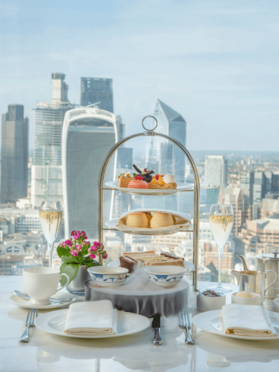 Everything is daintily sized, so you won’t feel overly indulgent ordering refills – which are unlimited. Finish up with a slice of cake – chocolate and pistachio marble, perhaps. Effusive service amps up the special-occasion nature; guests are never made to feel rushed, and are encouraged to explore the 32-strong list of teas while drinking in those city views.